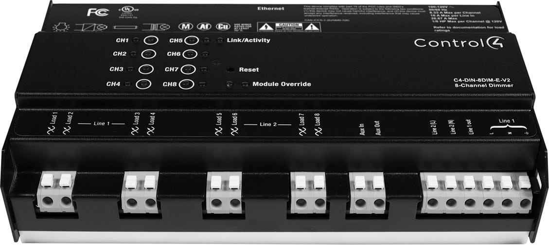 Can be installed in either a Control4 5-Slot or 2-Slot panel or in a third-party DIN rail panel