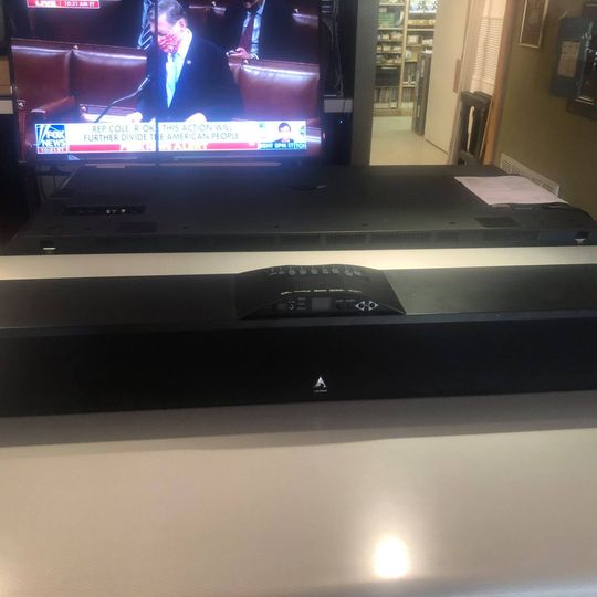 The H-PAS PowerBar 235 is a 43" long powered soundbar that delivers multi channel high-fidelity sound for your home entertainment system. It features Atlantic's H-PAS bass system, which produces deep, distortion-free bass without the need for a subwoofer! Using just two 4" woofers, the H-PAS PowerBar 235 reaches down to a solid 47Hz at very high theater-like SPL's, for an absolutely convincing and totally satisfying sonic experience. Because of its extended frequency response and dynamics, the H-PAS PoweBar 235 is the first soundbar where the subwoofer is truly optional. It is a perfect standalone solution! Note: This is a used item with some signs of wear. Please visit store or message us for further information.Read More