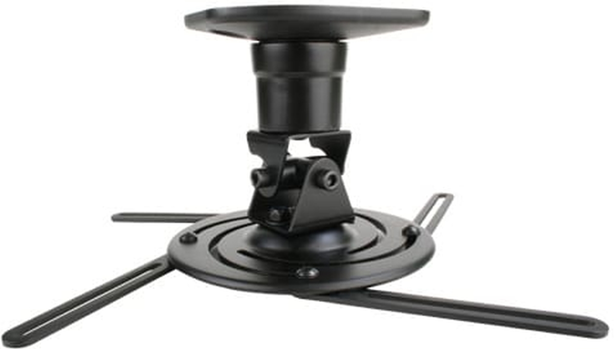 This mount's 4-mm. thick steel arm screams durability, while its 16.5" wingspan offers many possibilities. The slot down the middle ensures universal mounting possibilities that can get as creative as you do. For installation, the ceiling plate gets installed first and then the body and projector slide into place. A spring loaded-locking screw allows for easy finger tightening, locking the two together.